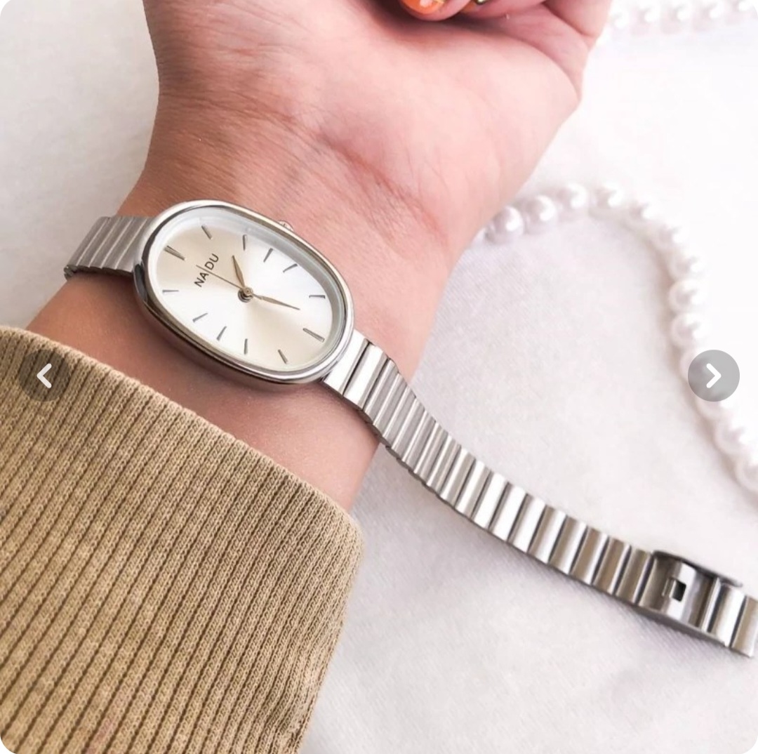 ساعت مچی زنانه صفحه بیضی نقره ای شاین