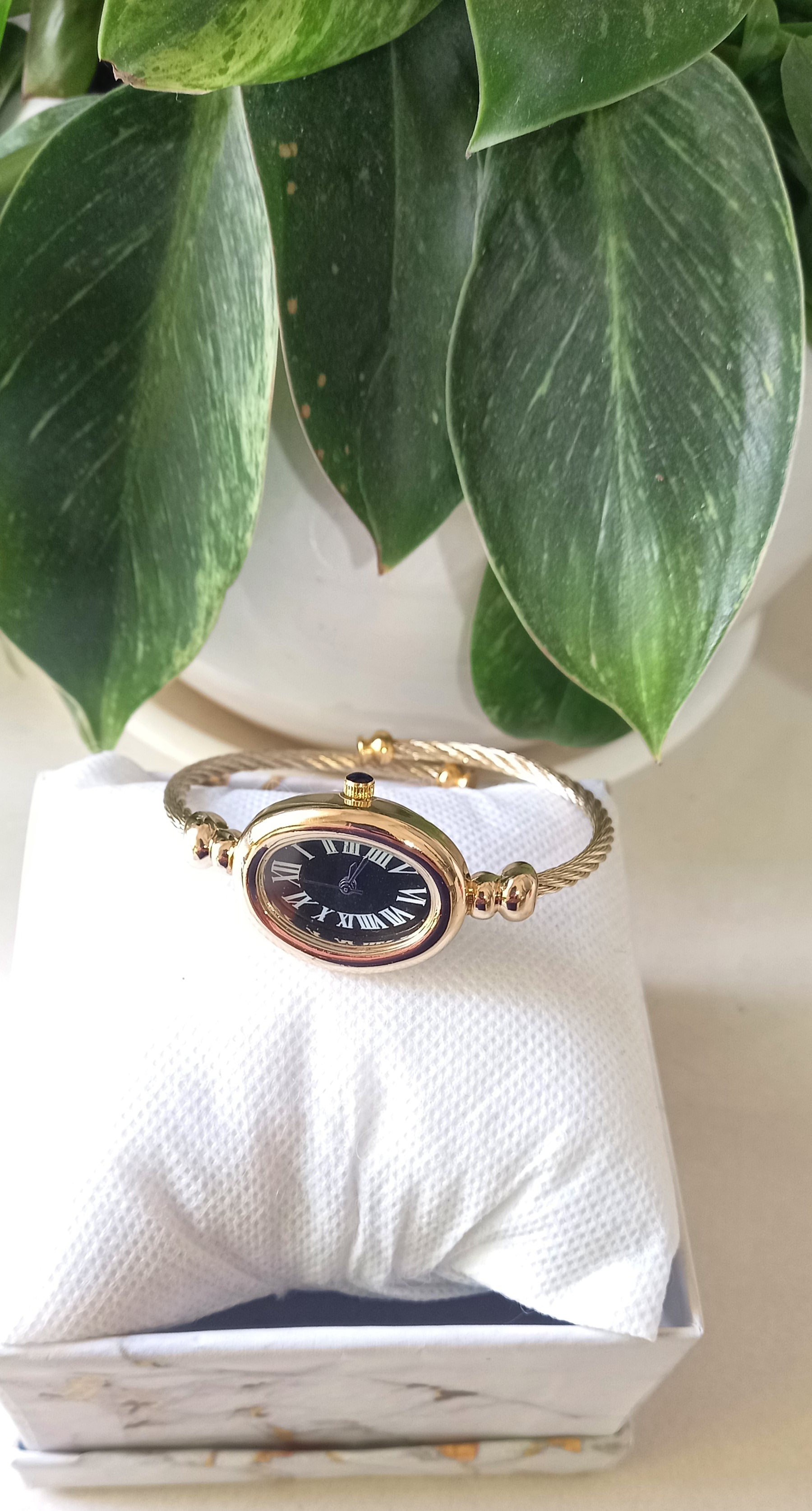 ساعت مچی بنگلی طلایی صفحه بیضی