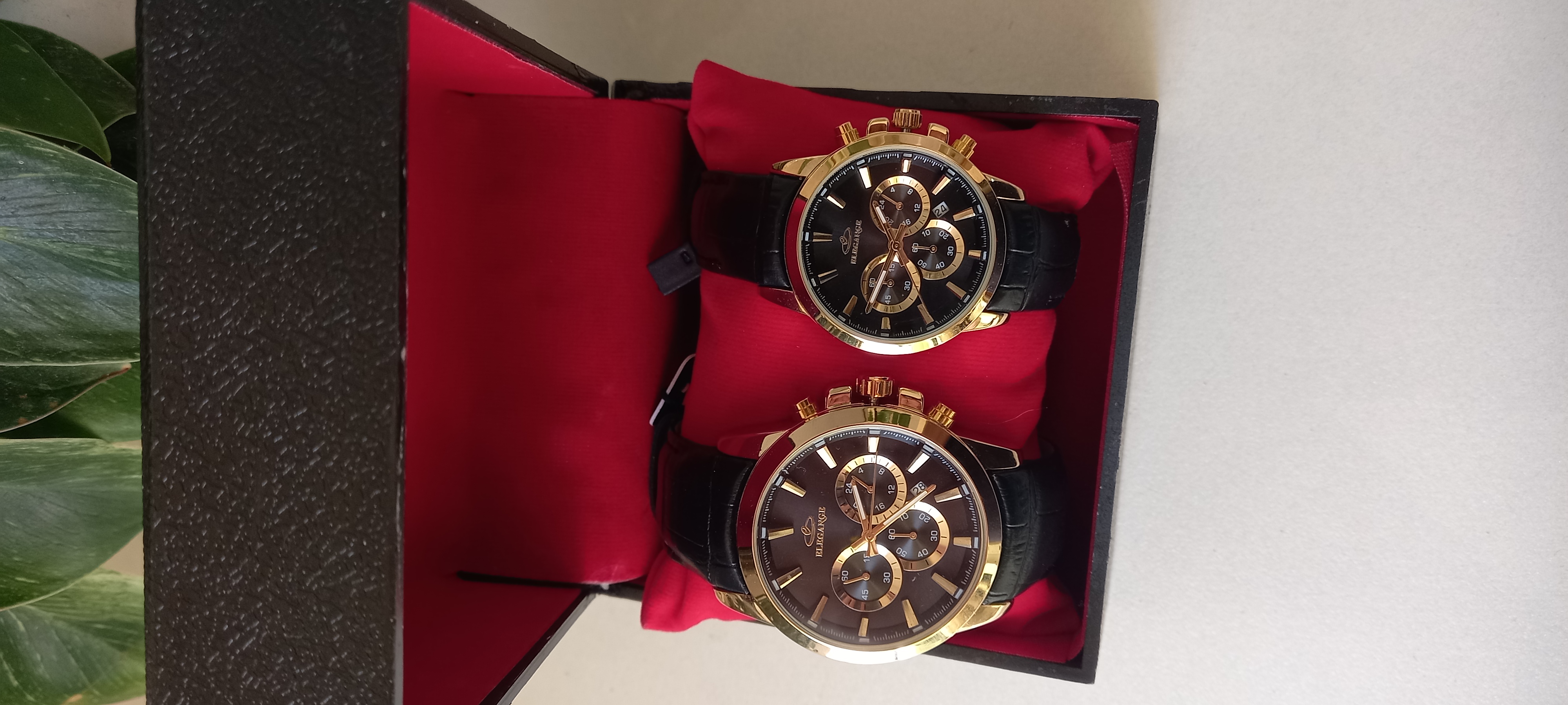 ست ساعت مچی الگانس بند چرم مشکی سه موتور