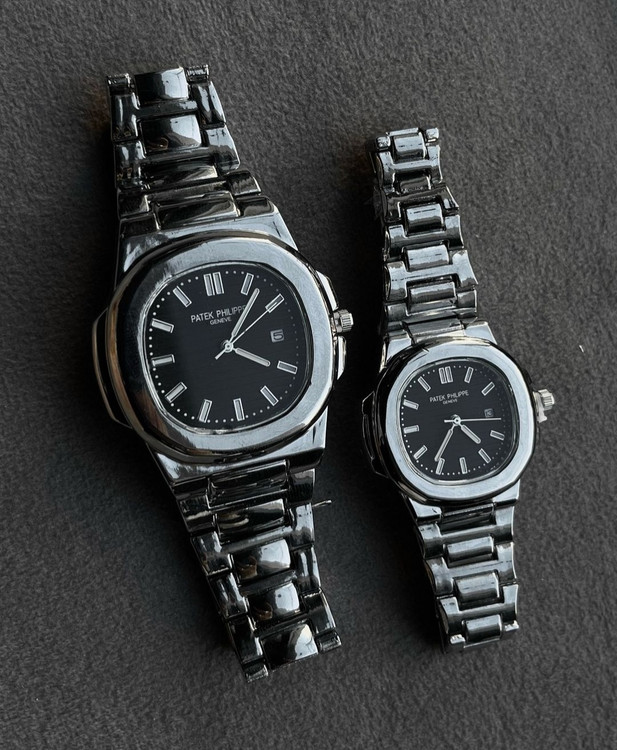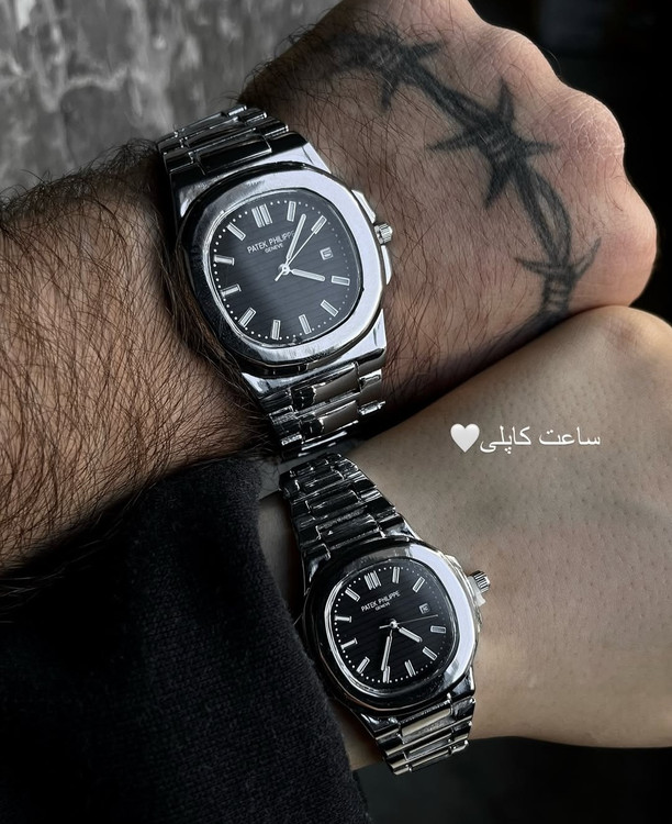 ساعت ست کاپلی پتک فیلیپ سیلور صفحه مشکی