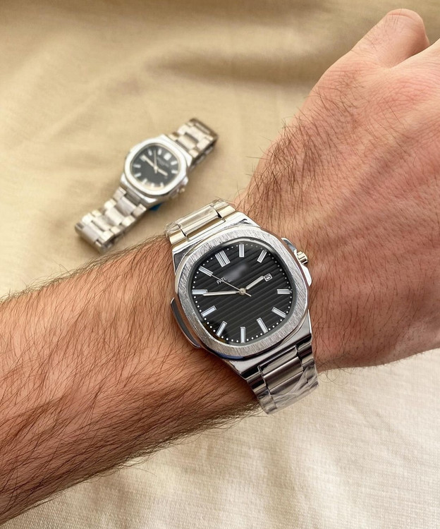 ساعت مردانه پتک فیلیپ ناتیلوس نقره ای صفحه مشکی ( هایکپی )