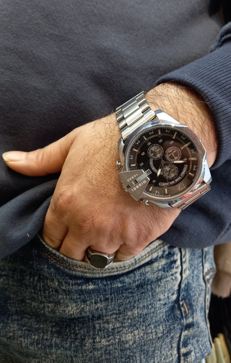 ساعت مردانه دیزل شاخدار سه موتور نقره ای