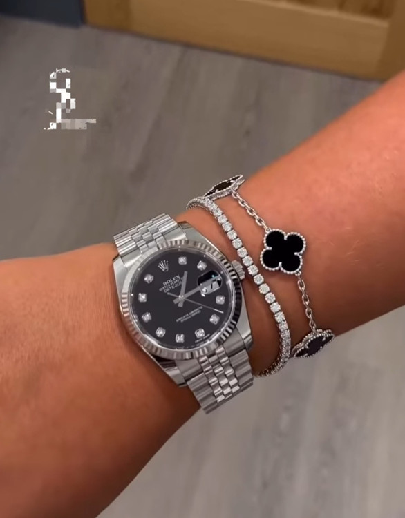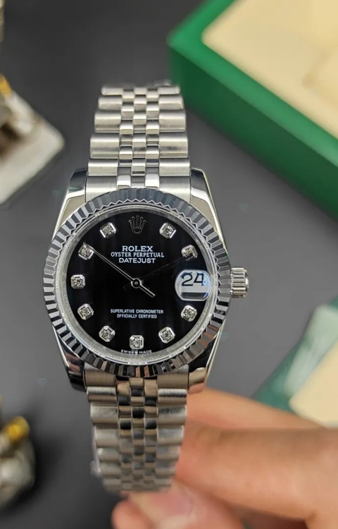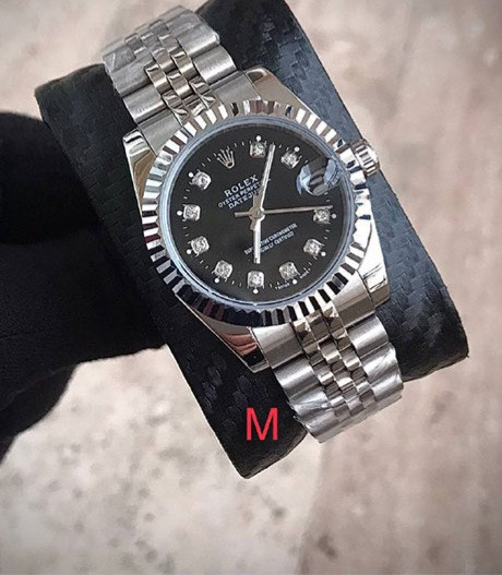 ساعت مچی زنونه رولکس سیلور صفحه مشکی متوسط