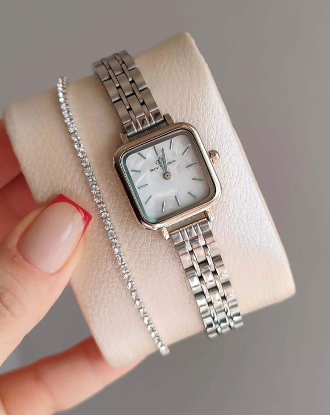 ساعت زنانه دنیئل ولینگتون نقره ای صفحه مشکی استیل رنگ ثابت ضد حساسیت موتور با کیفیت ژاپن شیشه الماسی بند قابل کوچک کردن جعبه شیک جهت هدیه کردن