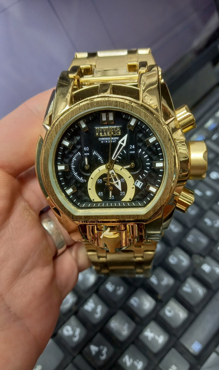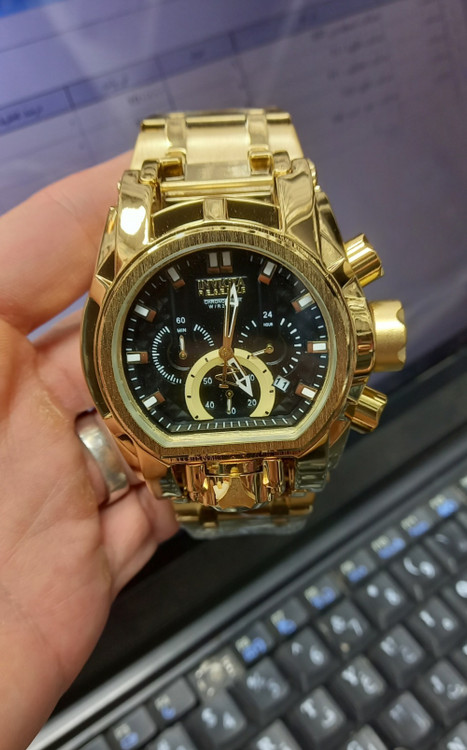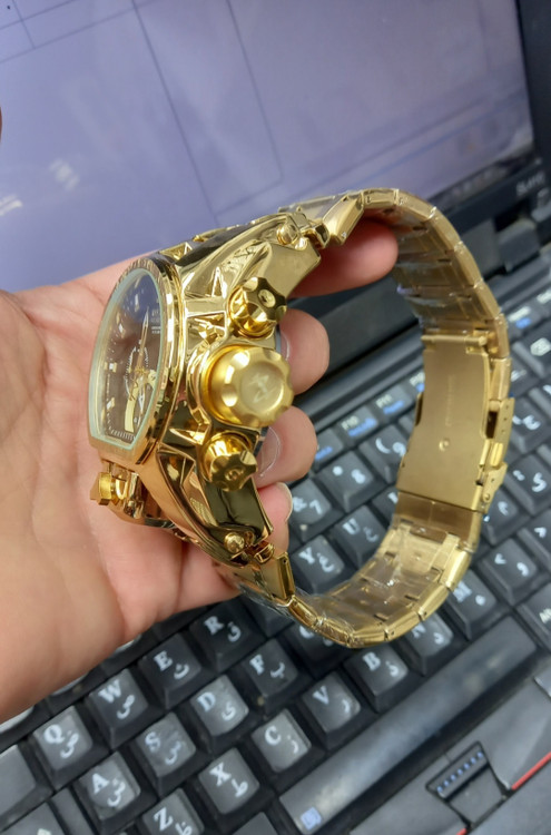ساعت مچی مردانه اینوکتا معروف به ساعت غول یا ساعت گودزیلا رنگ طلایی صفحه مشکی چهار موتور اکتیو
