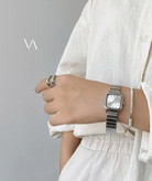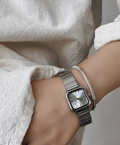 ساعت زنانه مربعی نقره ای با بند کرکره ای کارن