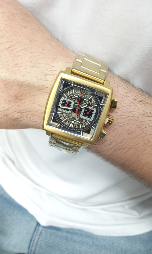 ساعت مچی مردانه موناکو سه موتور نقره ای صفحه سبز