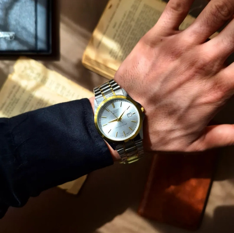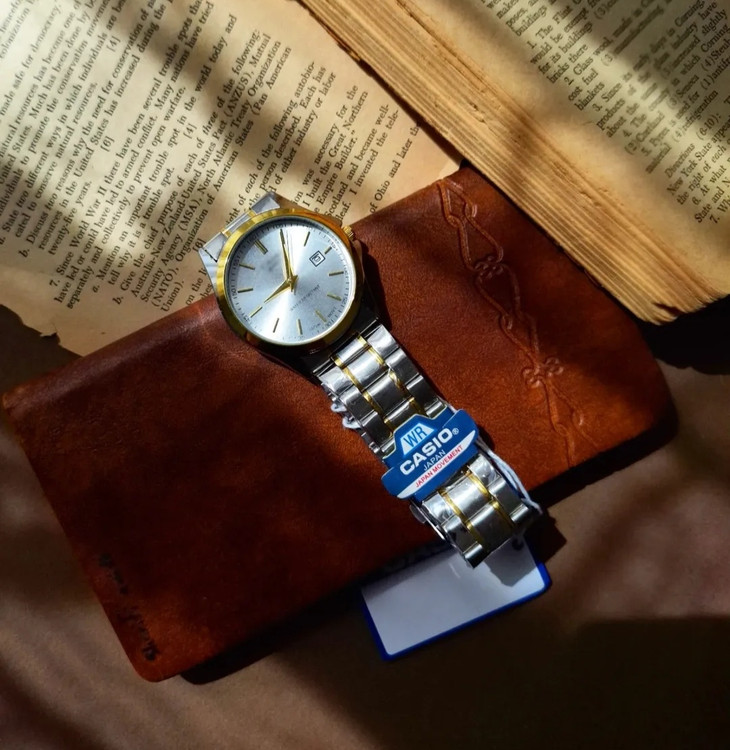ساعت مردانه کاسیو نقره ای طلایی کلاسیک
