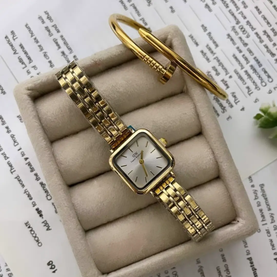 ساعت مچی زنانه Dw صفحه مربع طلایی
