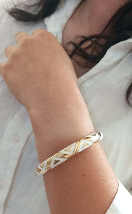 دستبند زنانه شیک و زیبای سفید میناکاری