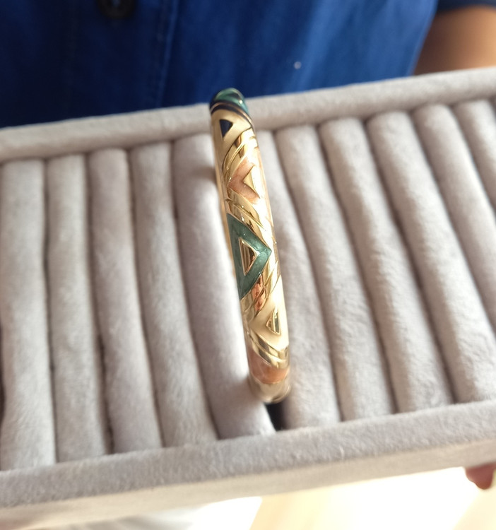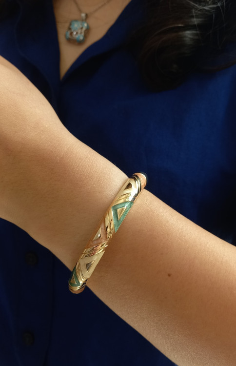 دستبند زنانه میناکاری طلایی با طیف سبز