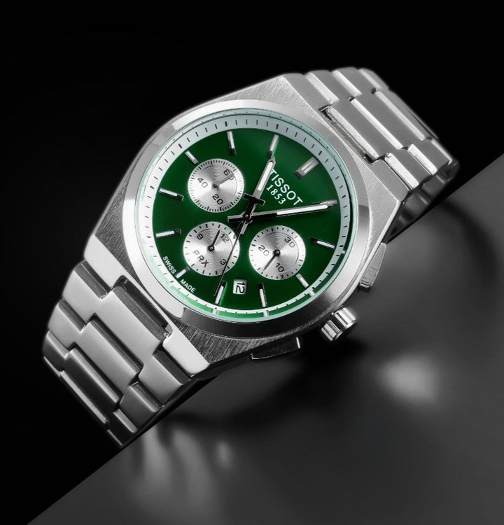 ساعت مردانه تیسوت سه موتور مدل TRX سیلور صفحه سبز