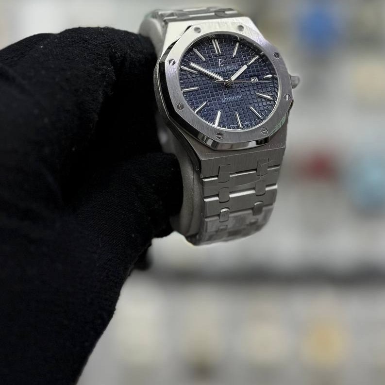 ساعت مچی مردانه اودمار پیگه AP فول استیل رنگ ثابت ضد حساسیت با گارانتی موتور با کیفیت عالی هایکپی گارانتی دارای تاریخ نگار فعال قفل پروانه ای استیل قابل سایز کردن دارای جعبه شیک هارد باکس داخل جیر