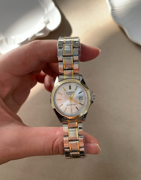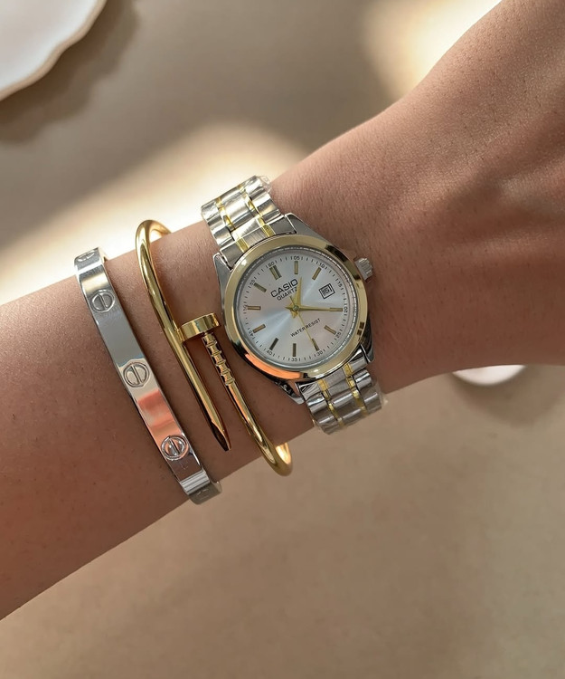 ساعت مچی زنانه کاسیو طلایی نقره ای کلاسیک