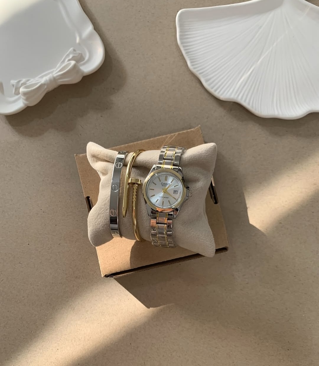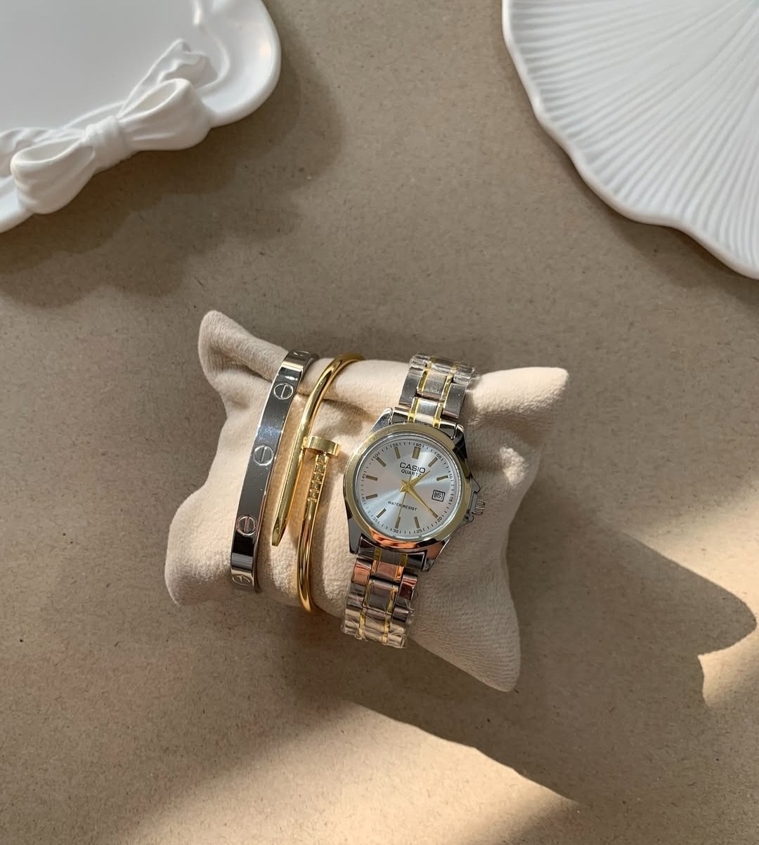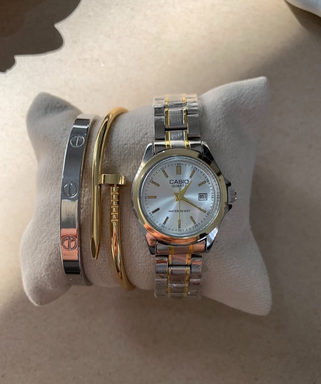 ساعت مچی زنانه کاسیو طلایی نقره ای کلاسیک