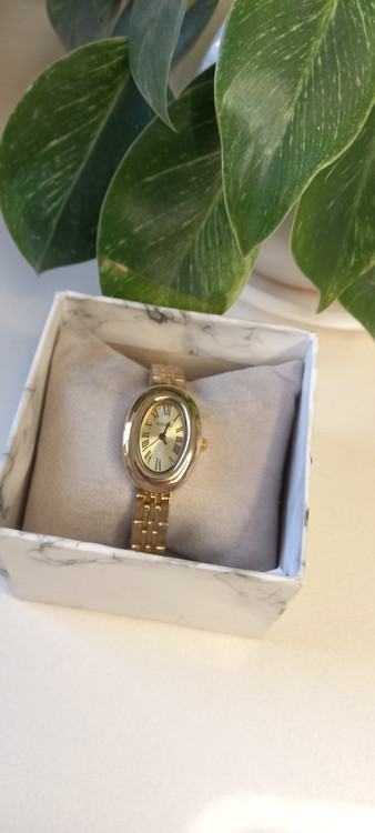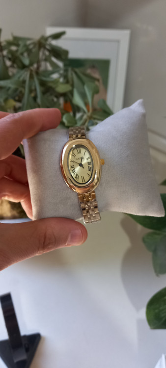 ساعت مچی زنانه صفحه بیضی طلایی صفحه یونانی