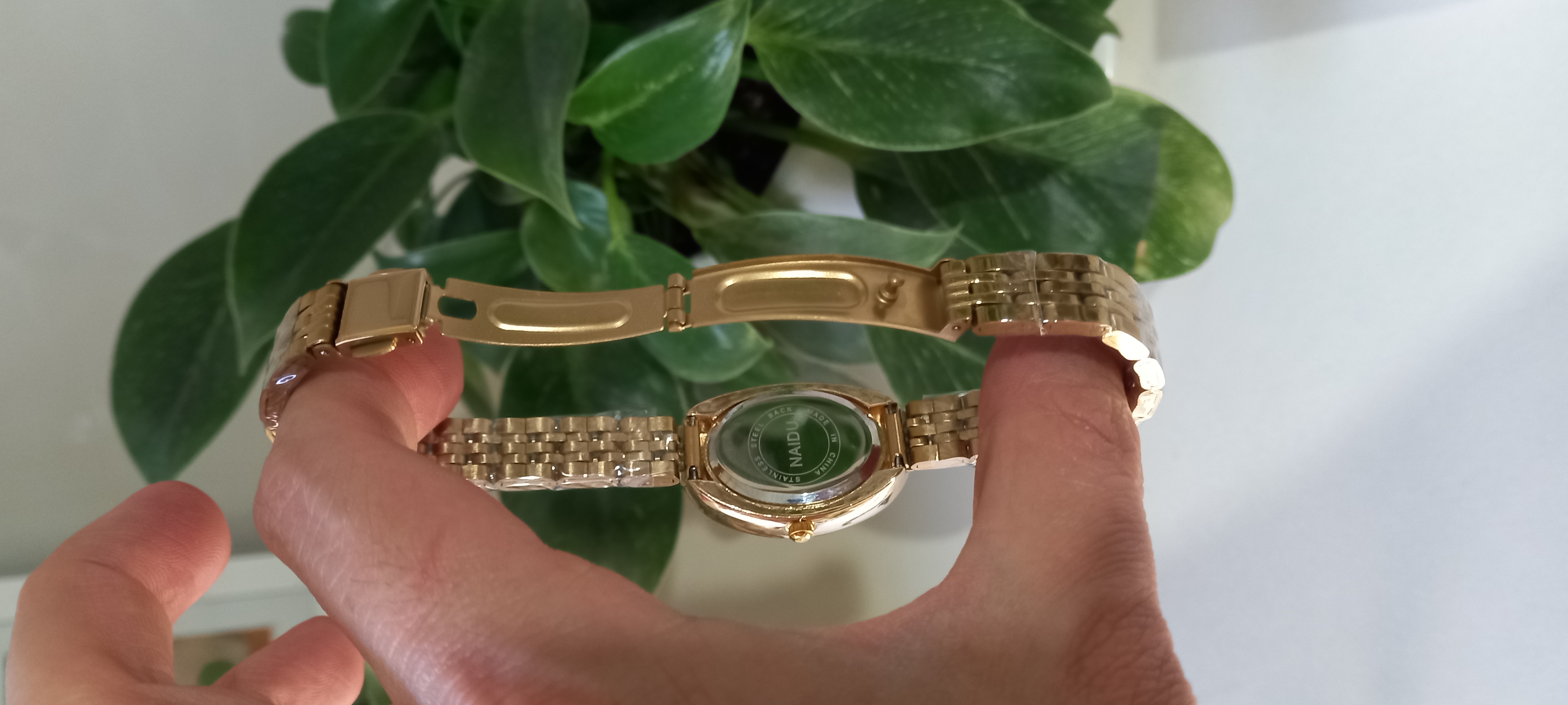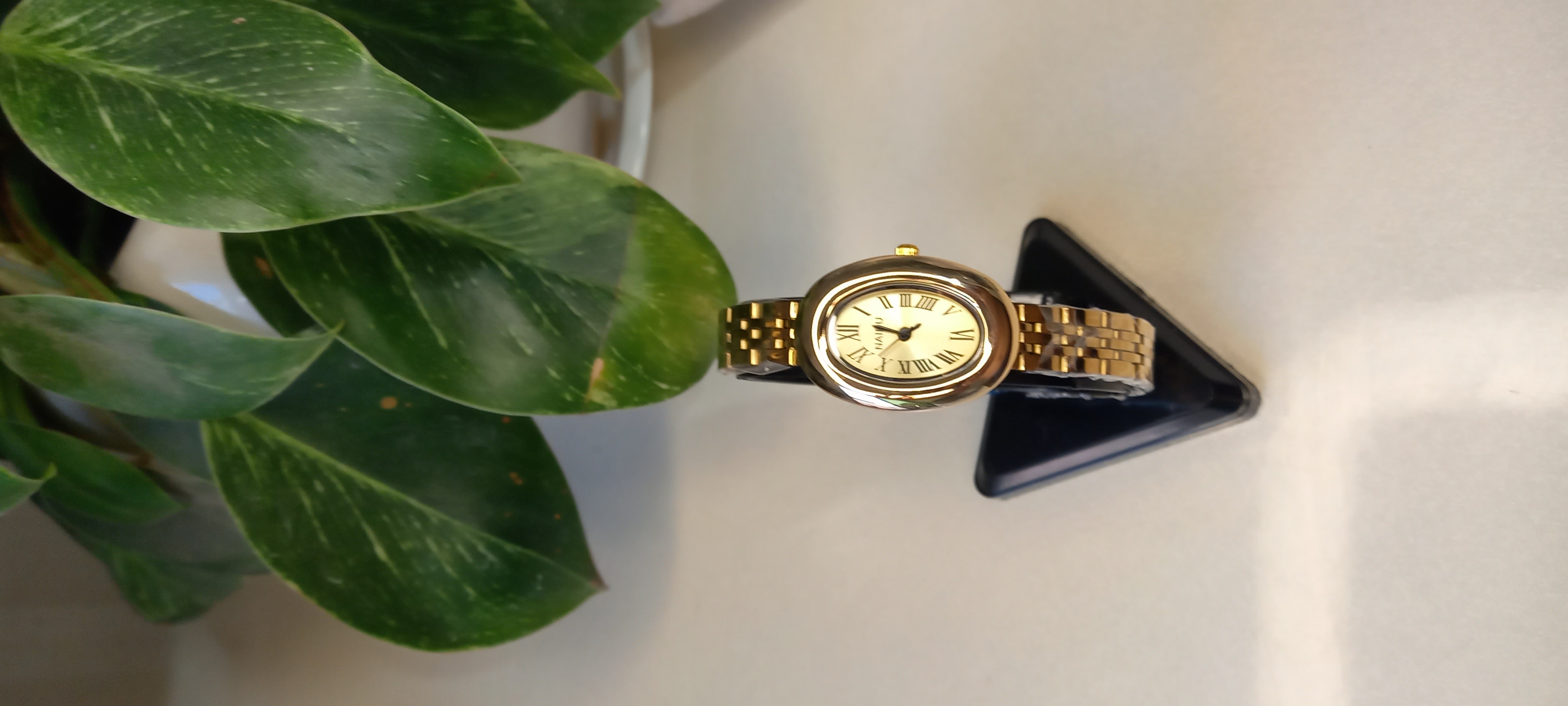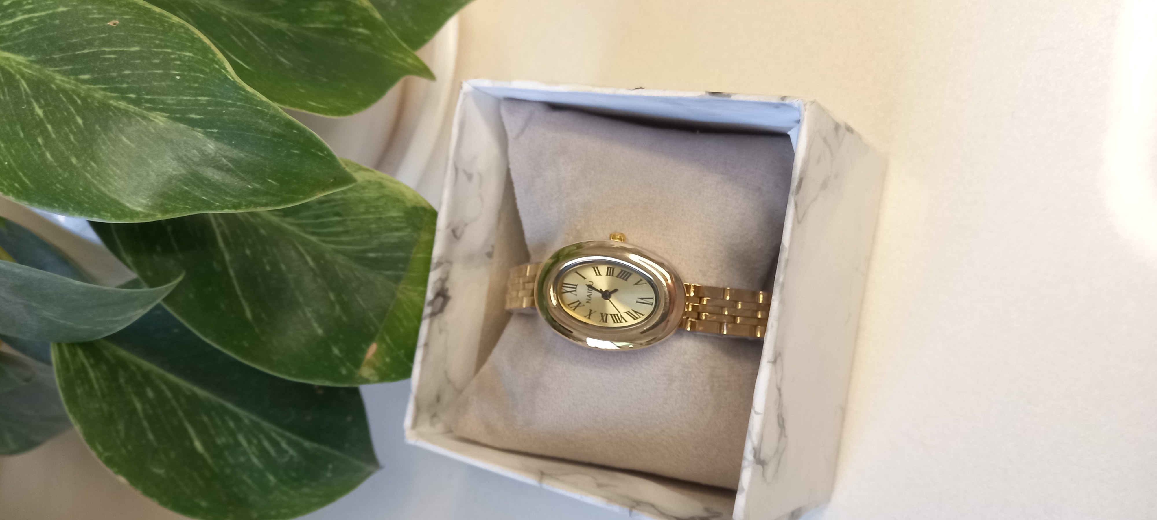 ساعت مچی زنانه صفحه بیضی طلایی صفحه یونانی