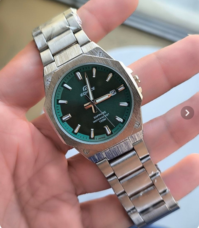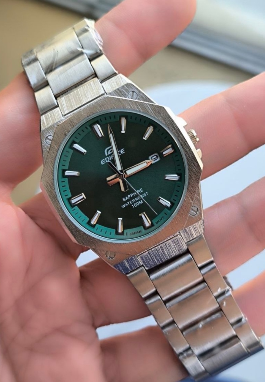 ساعت مچی مردانه کاسیو ادیفایس CASIO نقره ای صفحه سبز