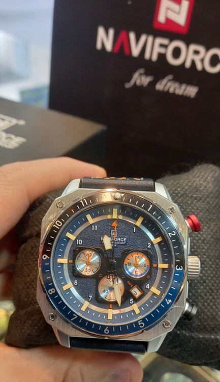 ساعت مچی مردانه نیوی فورس بند چرم با کارت گارانتی ، جعبه اورجینال و بگ نیوی فورس