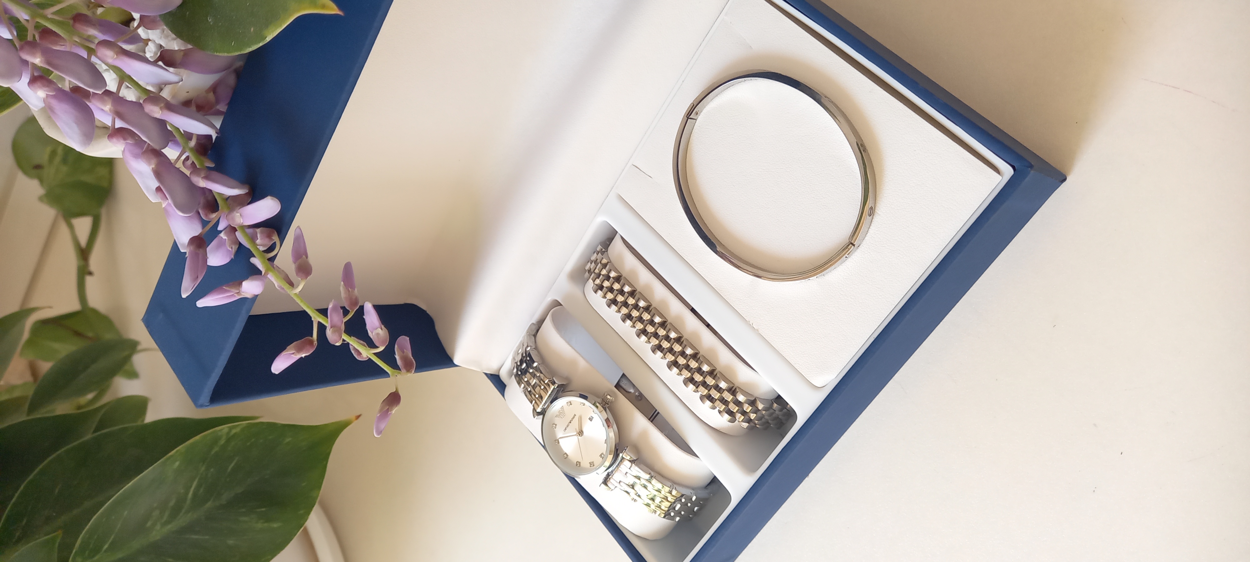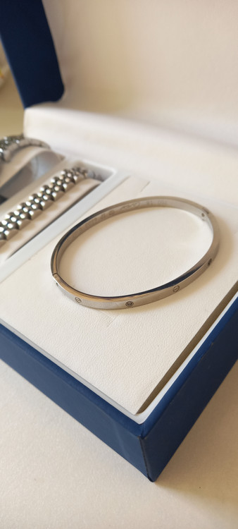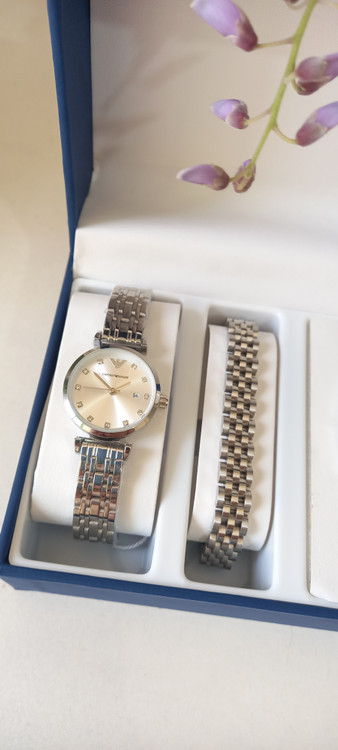 ست ساعت و دستبند نقره ای امپرو آرمانی و دستبند رولکس و النگو کارتیه لاو
