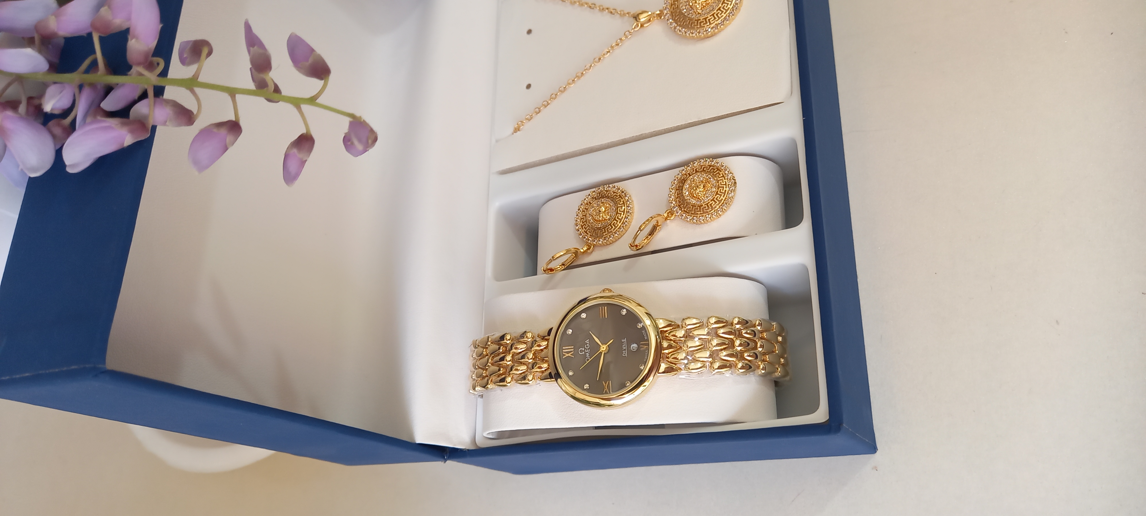 ست ساعت و نیسمت رولکس و ورساچی زنانه طلایی