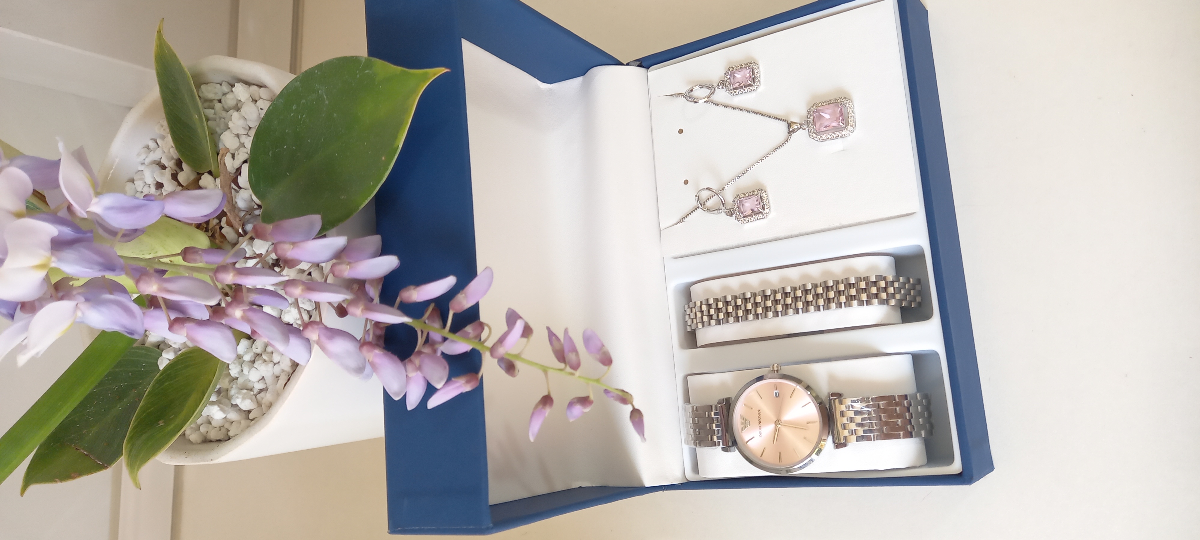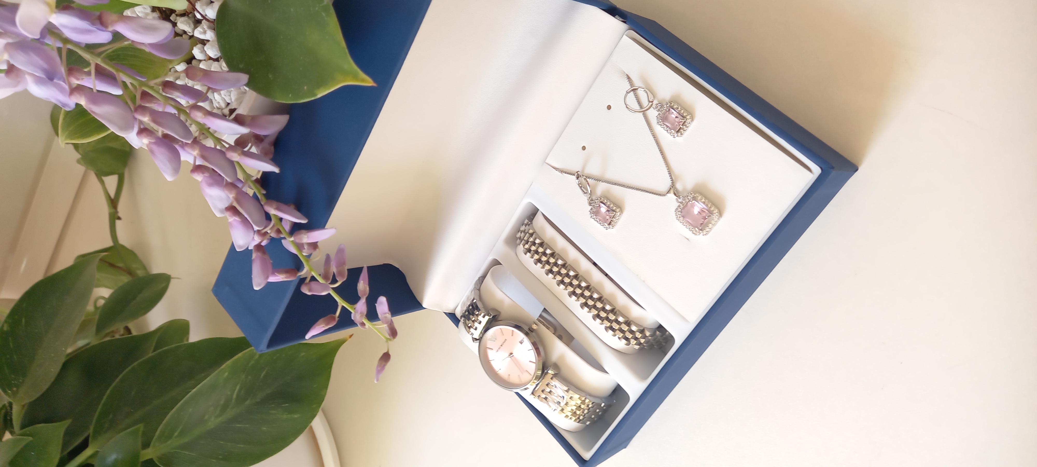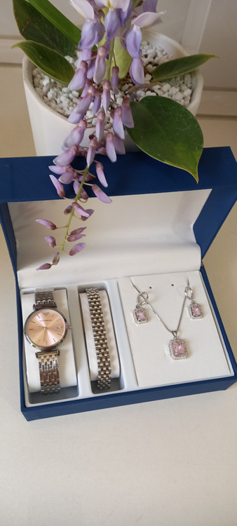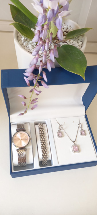 ساعت امپرو آرمانی ، دستبند رولکس ، نیمست سیلور صورتی