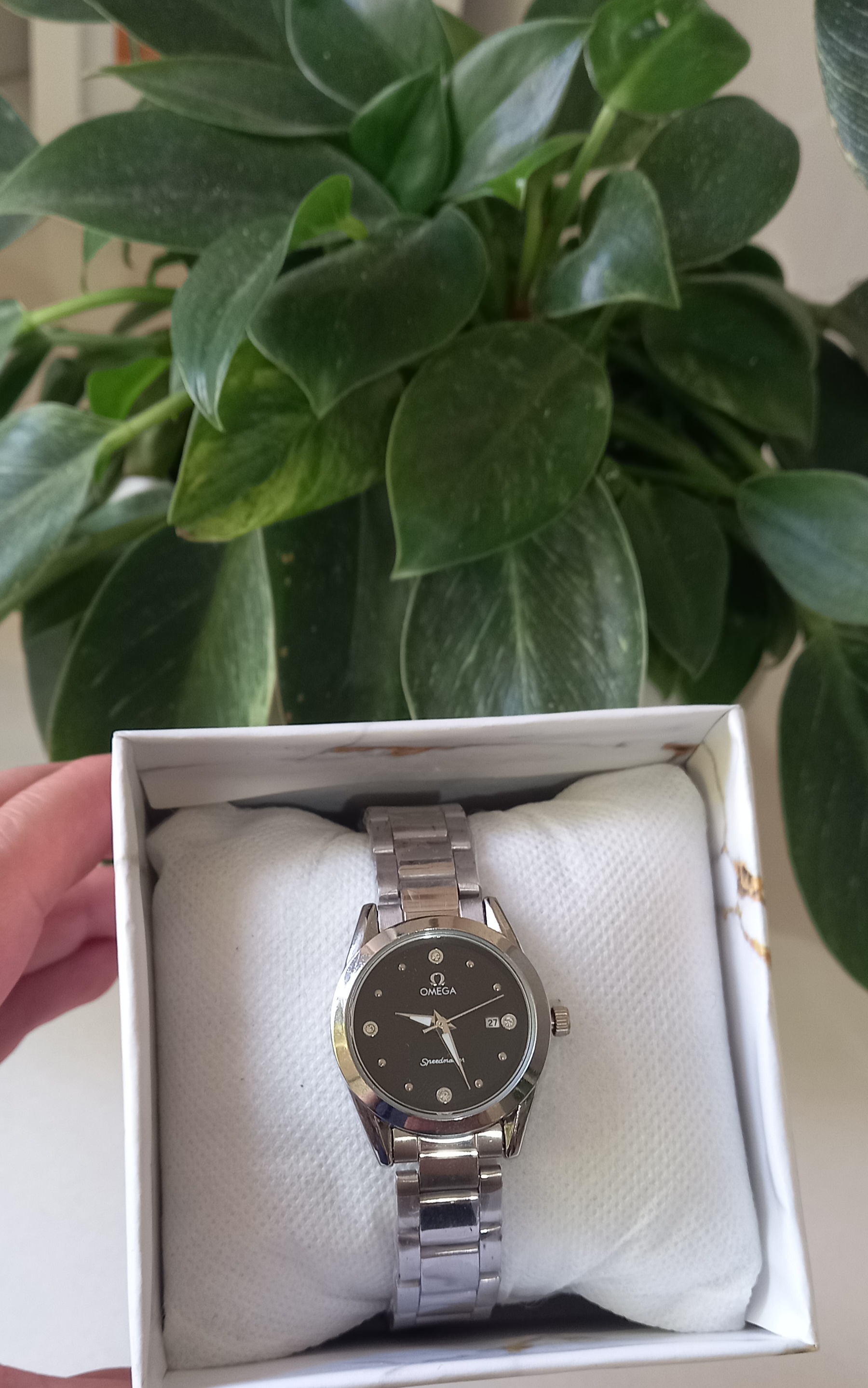 ساعت مچی زنانه نقره ای صفحه مشکی omega
