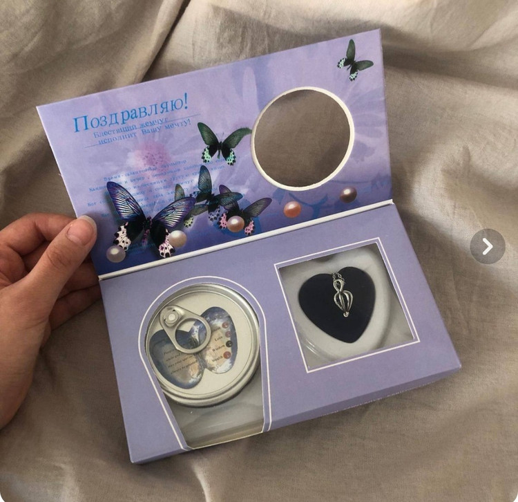 مروارید طبیعی که خودتون از داخل صدف زنده داخل کنسرو برمیدارین و داخل گردنبند قرار میدین